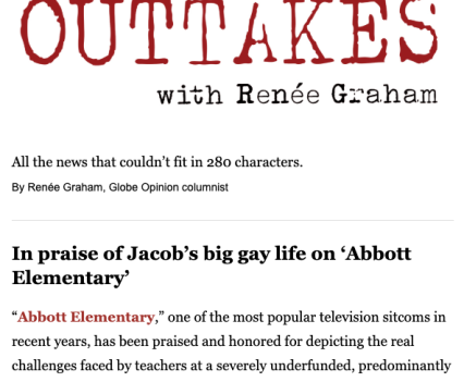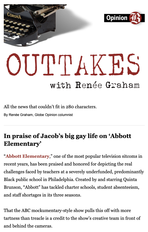 Three of these newsletters are written by columnists: Mira by Marcela Garcia; Outtakes by Renée Graham, and Arguable by Jeff Jacoby. (A fourth columnist, Kimberly Atkins Stohr, writes The Gavel newsletter about the federal judiciary; we have submitted that in the single newsletter category.) These newsletters are intended to be extensions of the writers’ newspaper columns, but in a more intimate form. Each includes personalized items such as their musical interests, the books they have read, their pets. The design of each is also intended to reflect the interests, tastes, and personalities of each of them. But most important, the lead essays generally reflect their most abiding interests, whether it be immigration, race and gender, history, politics, music, cooking or TV sitcoms.
