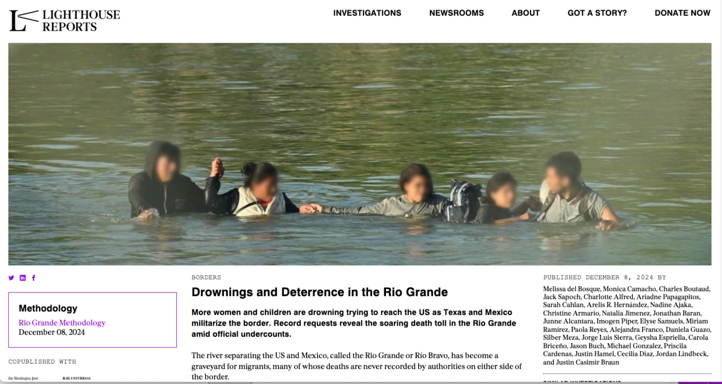 Through this data-driven, and OSINT investigation the team uncovered 1,107 migrant drownings in the Rio Grande from 2017 to 2023, greatly surpassing official counts. By systematically compiling death records from agencies in Mexico and the United States, alongside extensive on-the-ground reporting, the project built an unprecedented dataset.