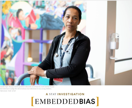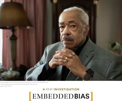 In their seven-part STAT series, “Embedded Bias,” reporters Katie Palmer and Usha Lee McFarling unmasked a hidden architecture of racism in modern medicine: race-based clinical algorithms. These are tools clinicians use every day — calculators often embedded in electronic health records — to assess disease risk and guide treatment. And in case after case, the reporters found that these algorithms quietly disadvantage patients of color, particularly Black patients, frequently with fatal consequences.