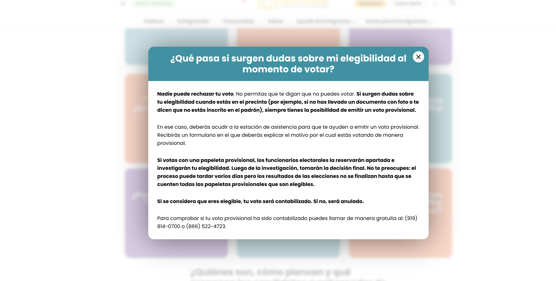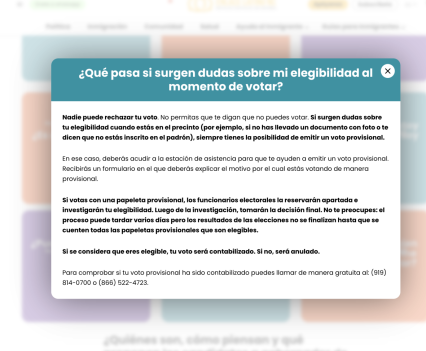 Our 2024 election guides were built in response to community questions shared during workshops and one-on-one conversations. Many Latino residents wanted to vote but lacked trustworthy, accessible information in Spanish. We created comprehensive guides explaining when, where, and how to vote, with verified details from the North Carolina State Board of Elections. Each guide included text and audio formats to meet different literacy levels and preferences.