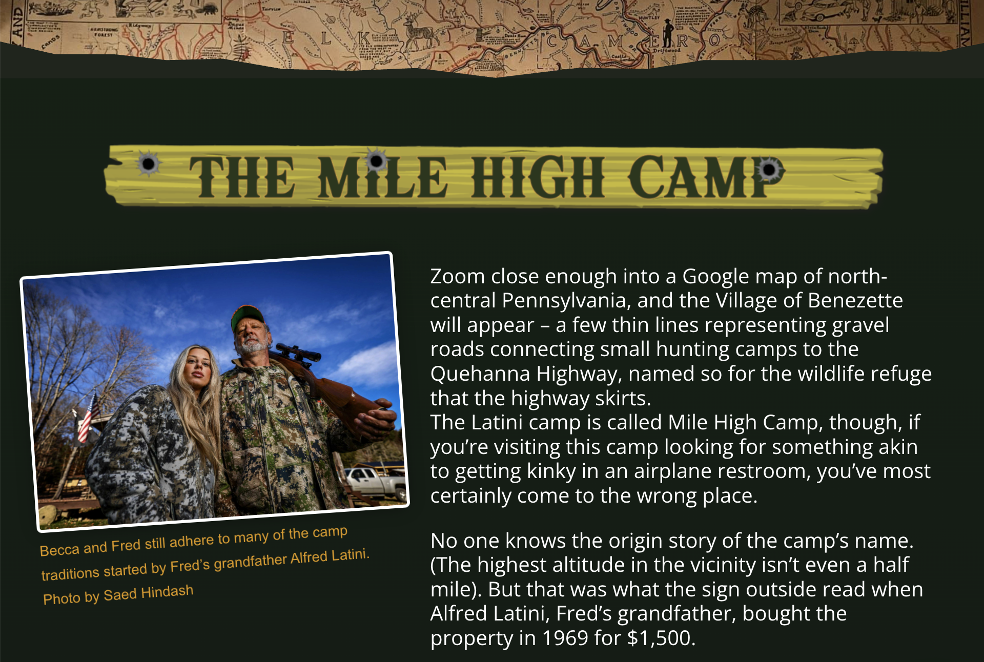 This multimedia project – vividly photographed and designed playfully with elements of rifle hunting – drew accolades for its innovation upon publication two days before Thanksgiving, just five days from the 2024 opening day for the deer rifle hunting season.