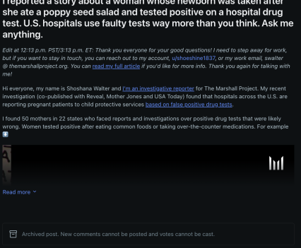 In 2024, Marshall Project Staff Writer Shoshana Walter found that hospitals use drug tests that return false positives from poppy seed bagels, decongestants and Zantac. Yet newborns are being taken from parents based on the results. In her investigative series’ second story, Walter revealed hospitals gave birthing patients medications used routinely for pain or in epidurals — to reduce anxiety or to manage blood pressure during cesarean sections — then reported them for positive drug tests. These stories were published in partnership with Mother Jones, Reveal and USA Today.