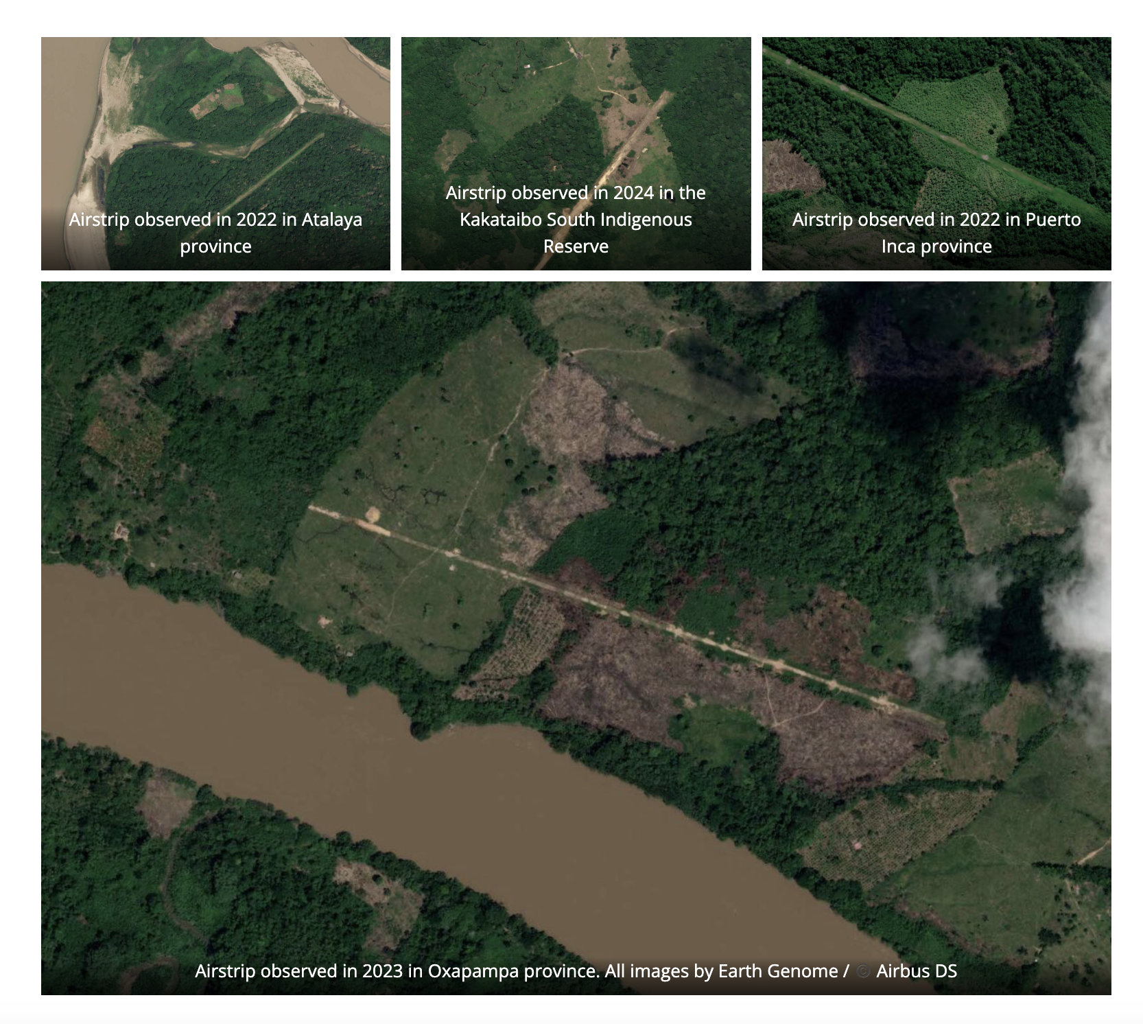 The densely forested terrain of most Peruvian Indigenous communities and year-round growing season make detecting illegal airstrips very challenging, since they are only used when a new drug crop is ready to be shipped, allowing the rainforest to grow over and obscure them between occasional flights.