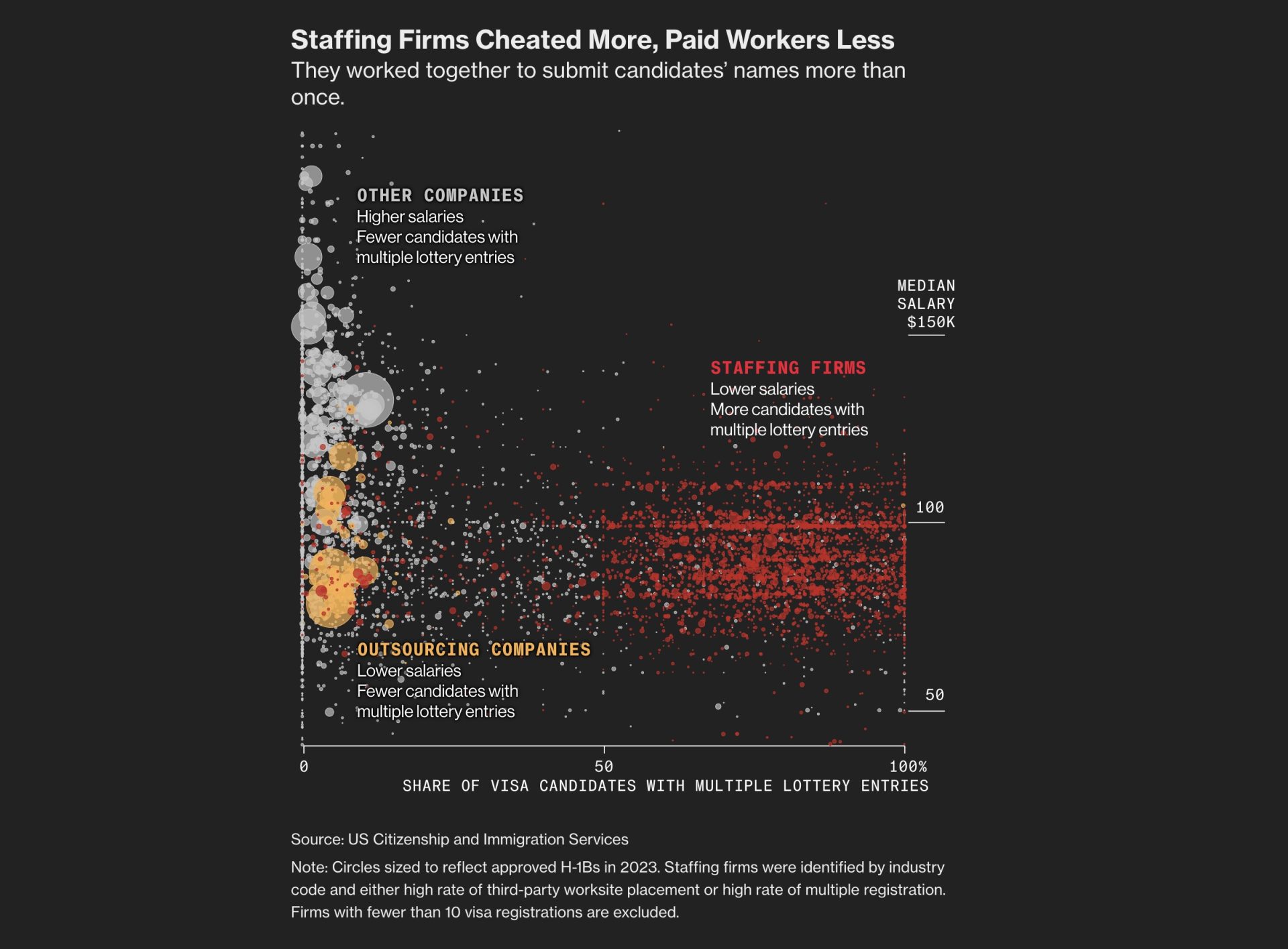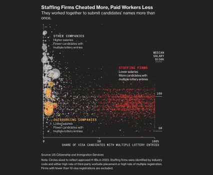 We examined H-1B lotteries – annual drawings that award a limited number of new visas amid overwhelming demand. Federal data, obtained through a Freedom of Information Act lawsuit, revealed that IT staffing companies exploited the lottery, sometimes fraudulently, to obtain H-1B visas. Their gaming, which included filing multiple entries for the same individuals, disadvantaged other US businesses. Our analysis showed nearly half of all visas went to outsourcing or staffing companies.