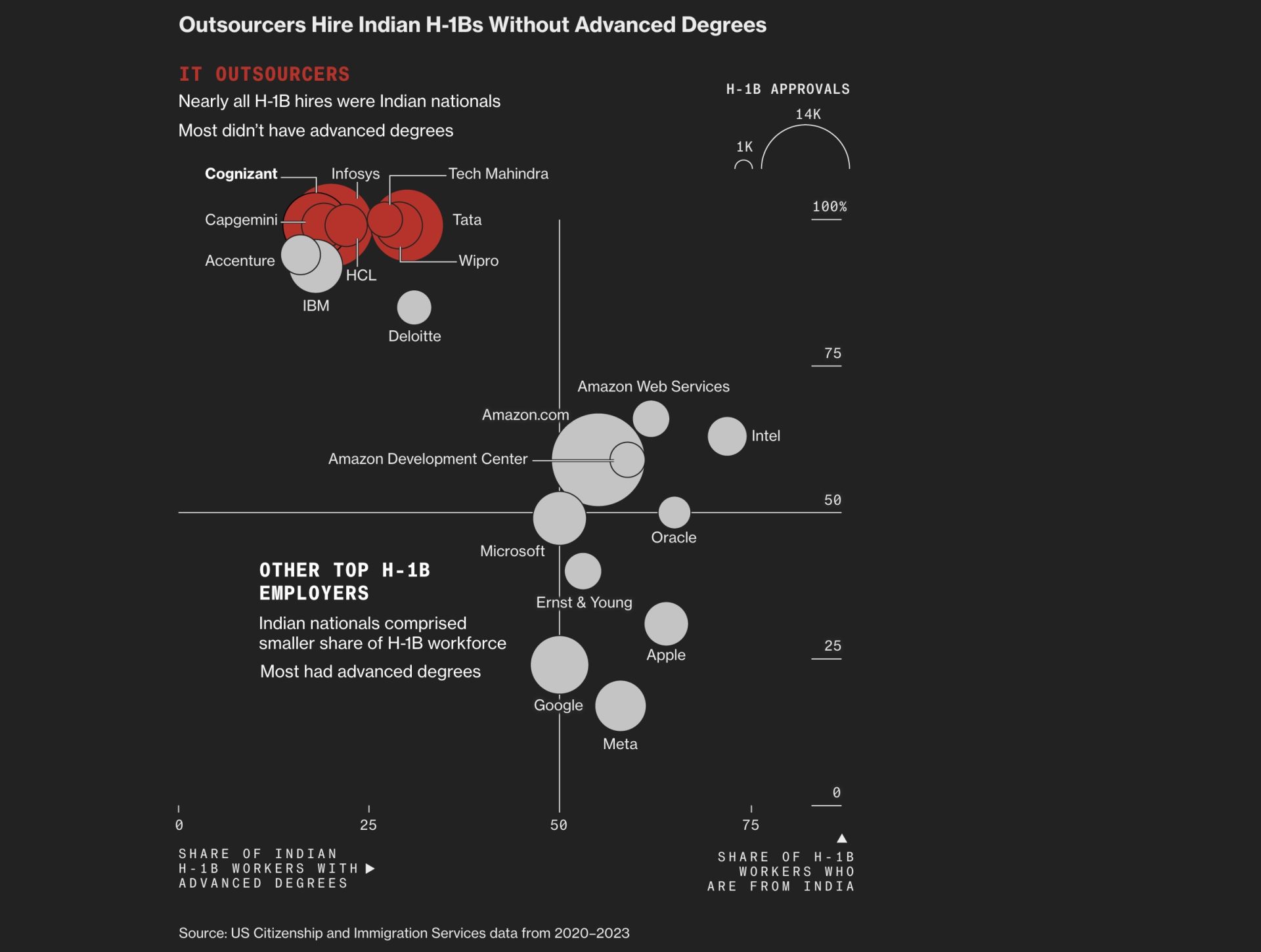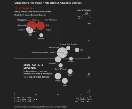 Widespread use of H-1B workers in lower-level positions triggered discrimination lawsuits. Reporters used data released through discovery in a class-action lawsuit to show how one firm’s US workers were affected.