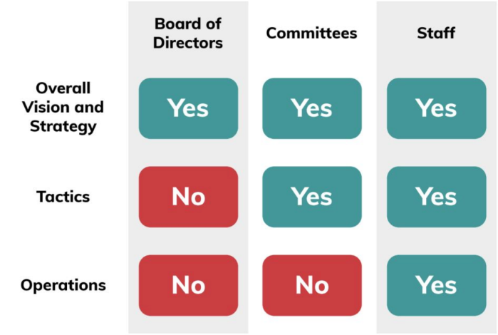 From the organization’s inception in 1999, the Board’s culture has reflected that of our digital community–agile, diverse and open to ideas. And, as it has evolved from an operating to a governing board, it has become uniquely collaborative and supportive of leadership and staff. This chart serves as a quick visual guide to areas of focus for the Board and staff.