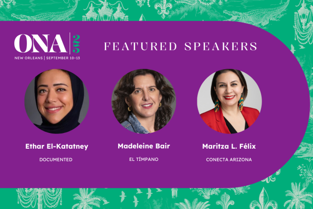On Wednesday, Sept. 10, join us for the opening featured session Leading at the Margins: Personal Resilience in the Face of National Reckoning—an essential conversation to ground the learning and connections you will experience the rest of the conference. Hear from local news leaders who are serving some of the most vulnerable communities how they cultivate resilience, protect their teams and stay true to the mission. Ethar El-Katatney, Editor-in-chief at Documented, will moderate the conversation with Madeleine Bair, Founding Director of El Tímpano, and Maritza L. Félix, Founder and Director of Conecta Arizona. Whether you’re just getting started in your journalism career or leading a major international outlet, you will find inspiration to sustain your work in the face of political backlash and broken systems.